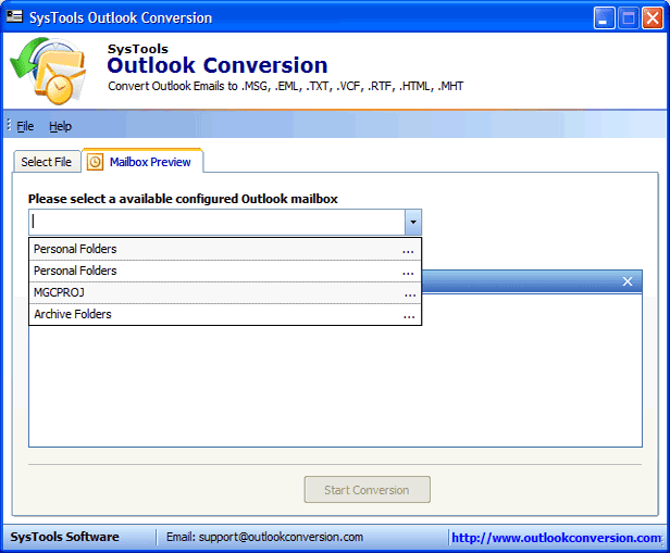Then Outlook conversion software will exhibit Convert Outlook Mailbox window to select saving file formats: